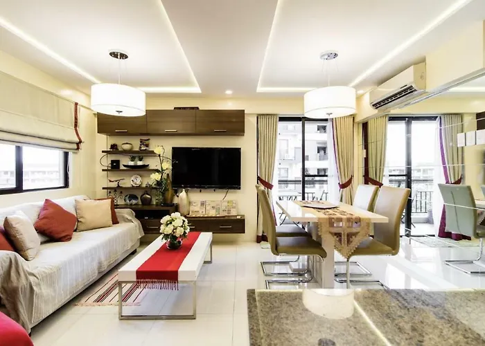 Offering spa facilities such as a plunge pool, the spacious Grand Apartment Near Bgc is situated nearly a 10-minute drive from Bonifacio Global City. Offering views of the pool, this apartment includes a terrace with a swimming pool.